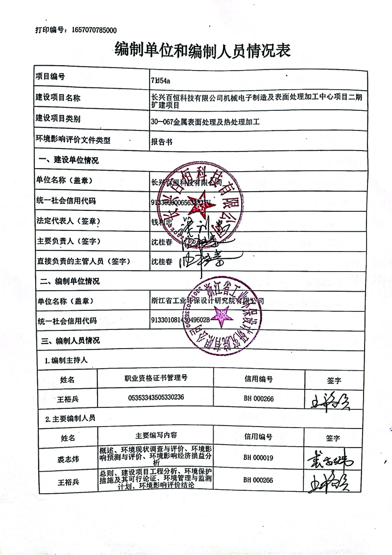 根據要求我公司對長興百恒科技有限公司二期擴建項目環評報告書進行全本公示發布日期:2022/9/26 類別:公司新聞 瀏覽量: 2643 根據《浙江省建設項目環境保護管理辦法(2018年修正)》及相關要求,我公司對長興百恒科技有限公司機械電子制造及表面處理加工中心項目二期擴建項目環境影響報告書進行全本公示
