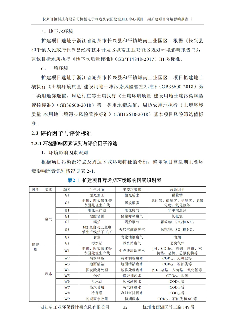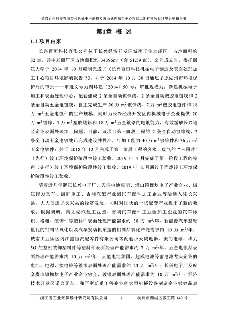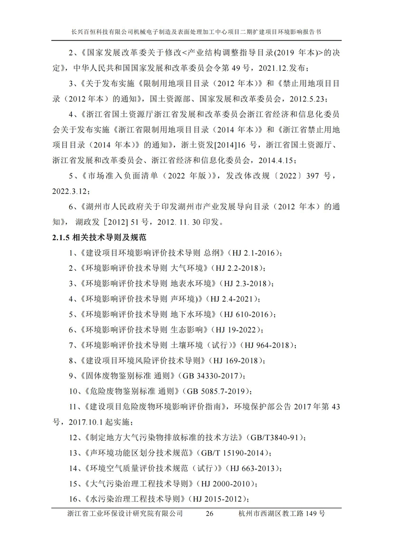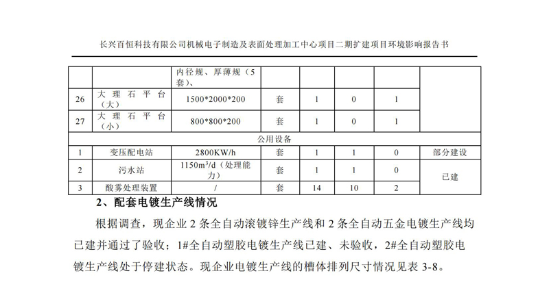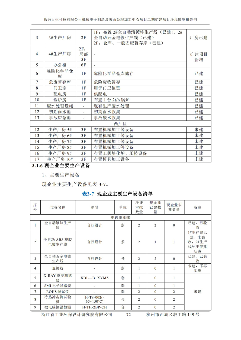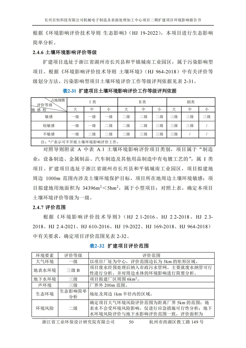 更多完整版詳情請下載文件預覽 “ 長興百恒科技有限公司機械電子制造及表面處理加工中心項目二期擴建項目 環境影響報告書 ” |