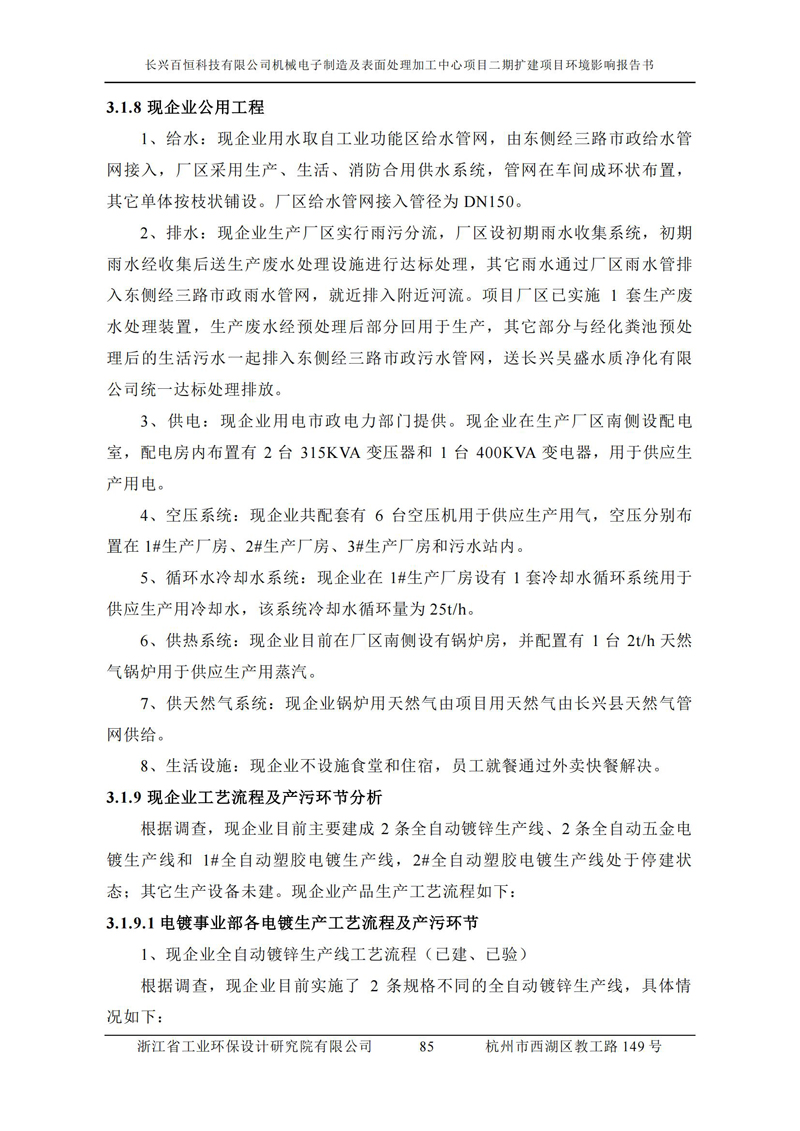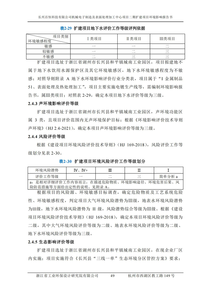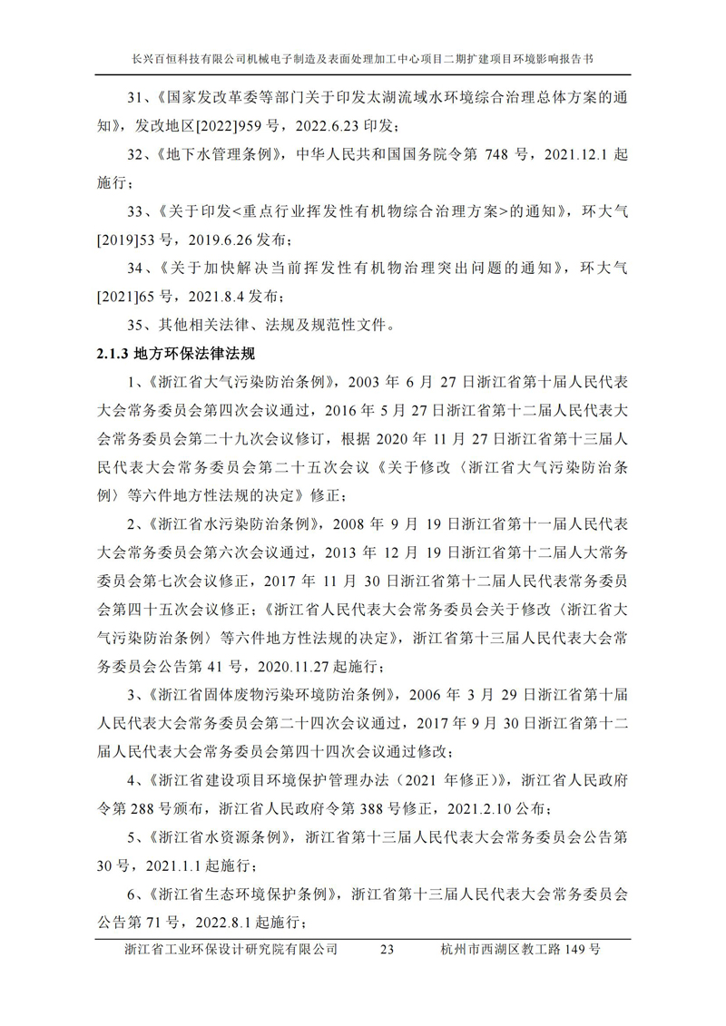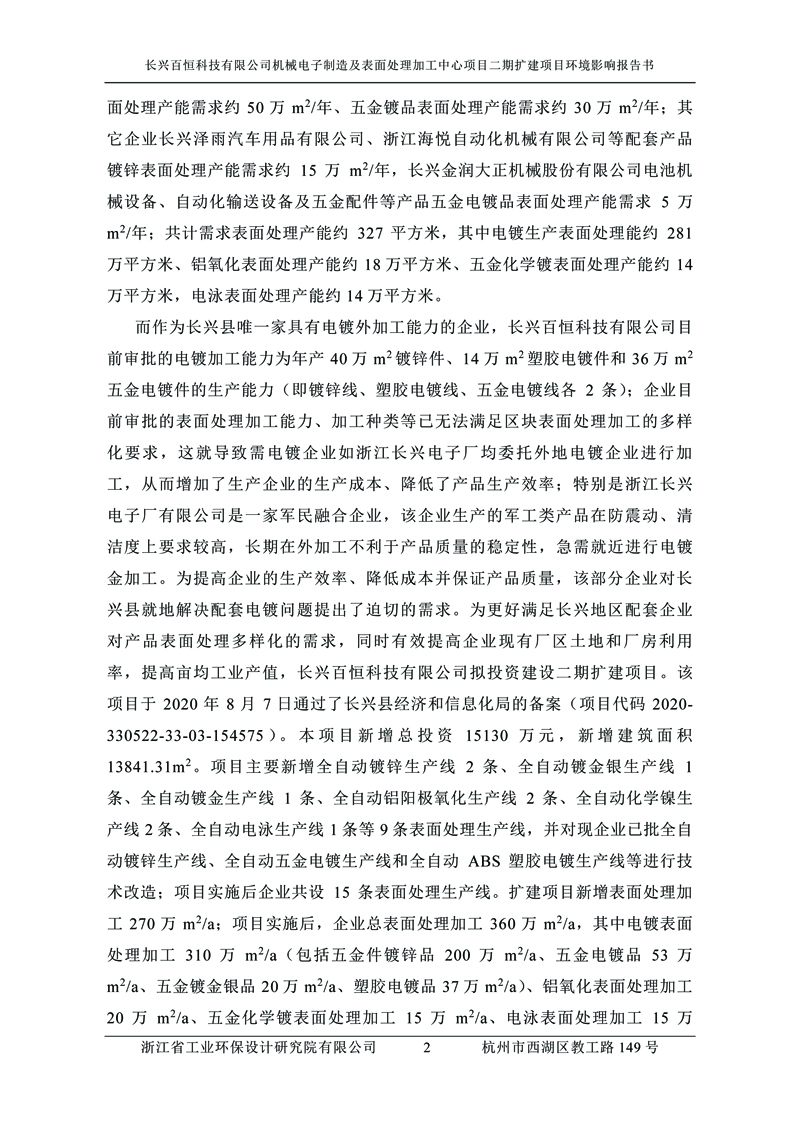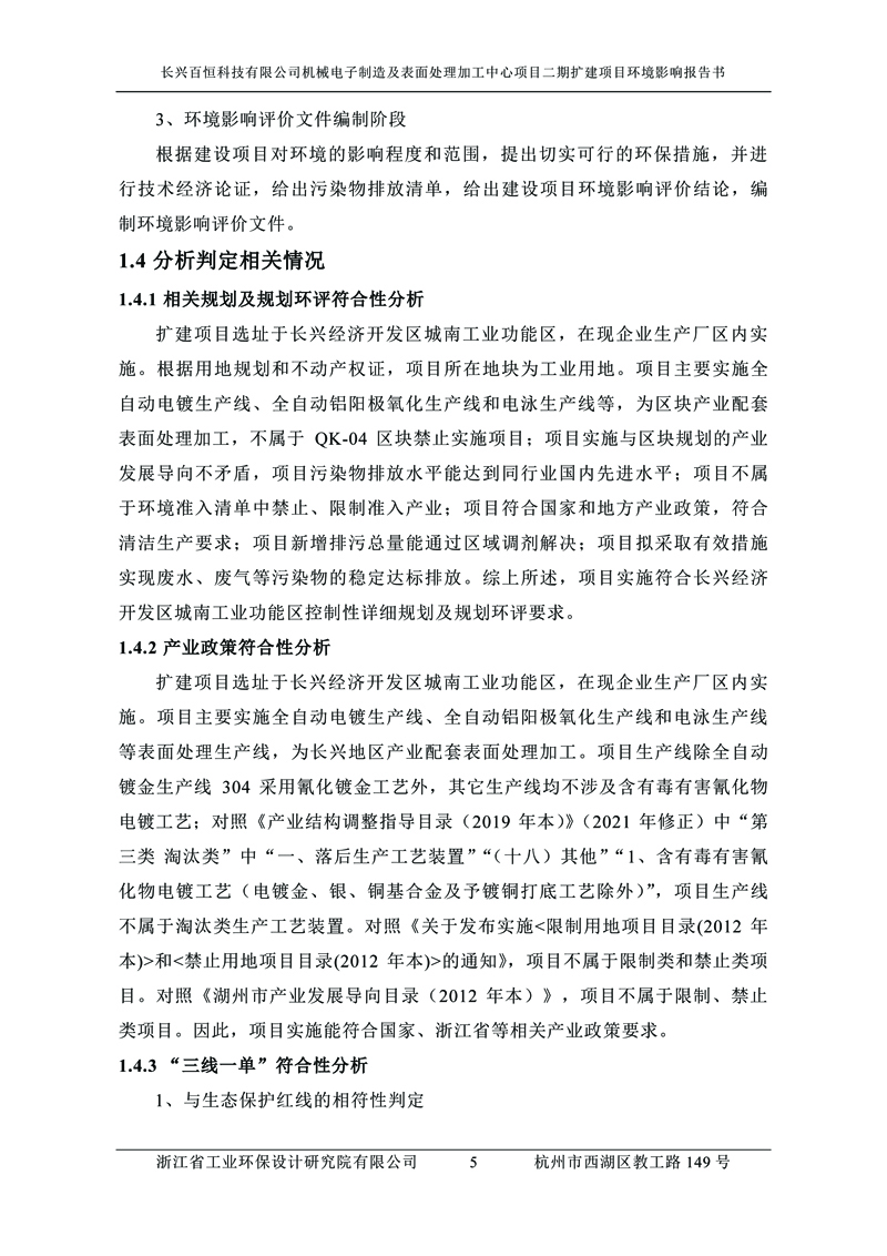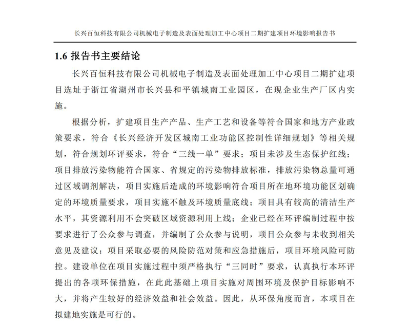 更多完整版詳情請下載文件預覽 “ 長興百恒科技有限公司機械電子制造及表面處理加工中心項目二期擴建項目 環境影響報告書 ” |