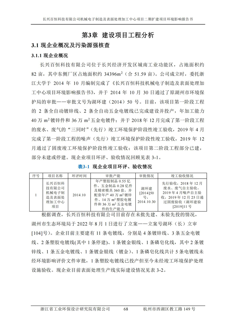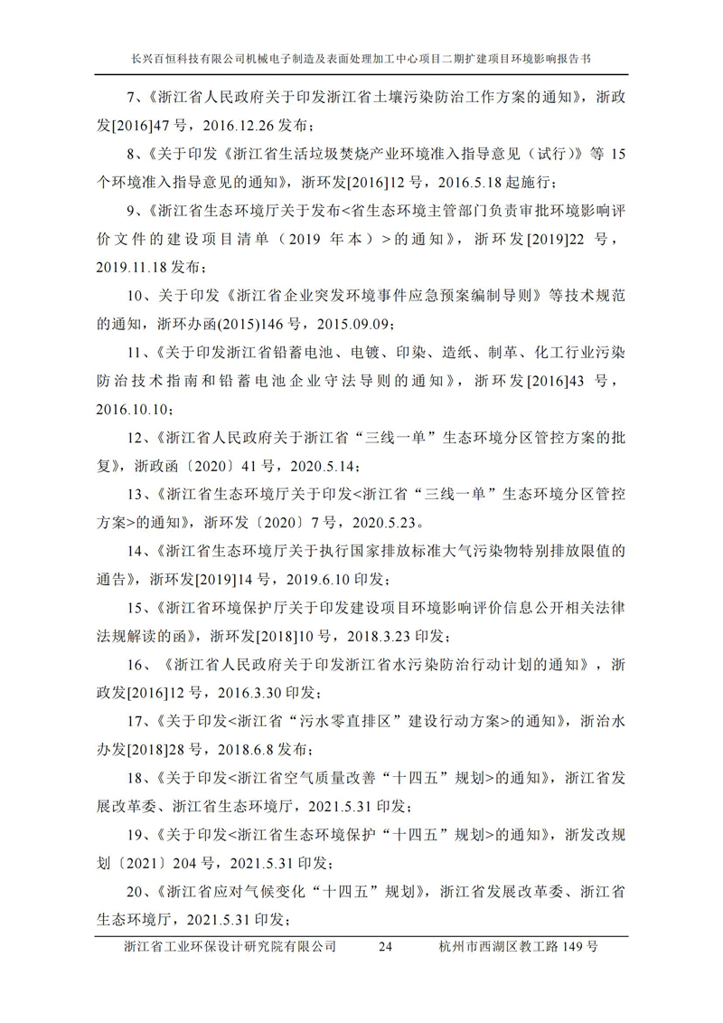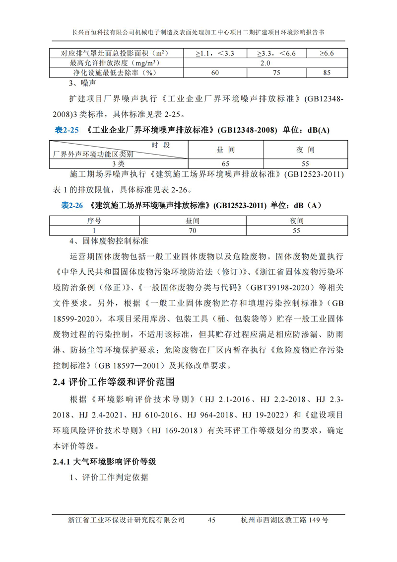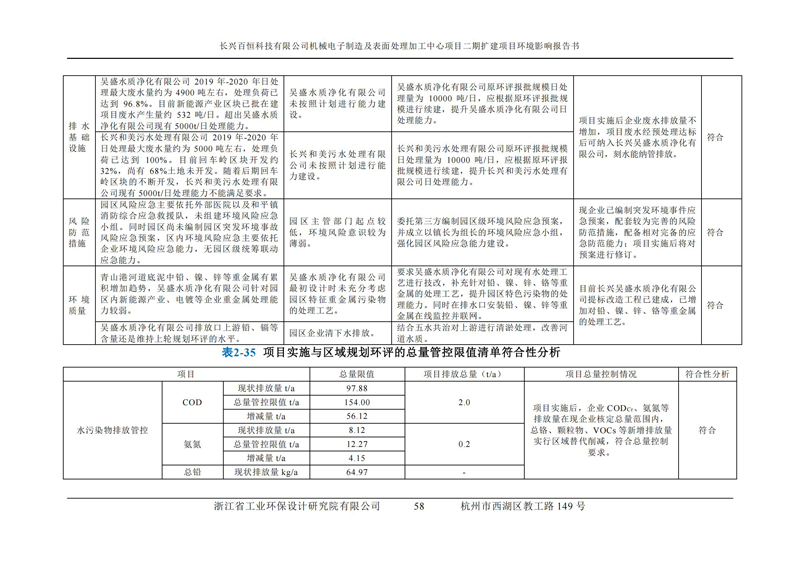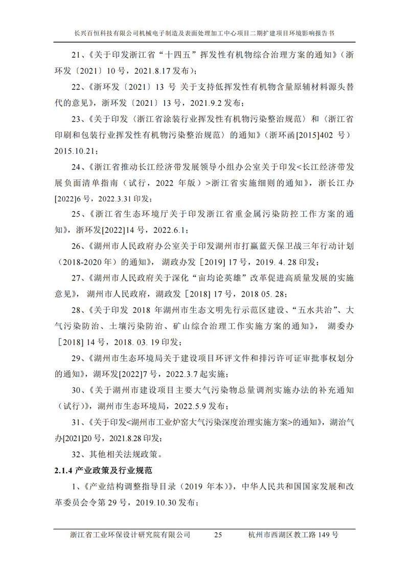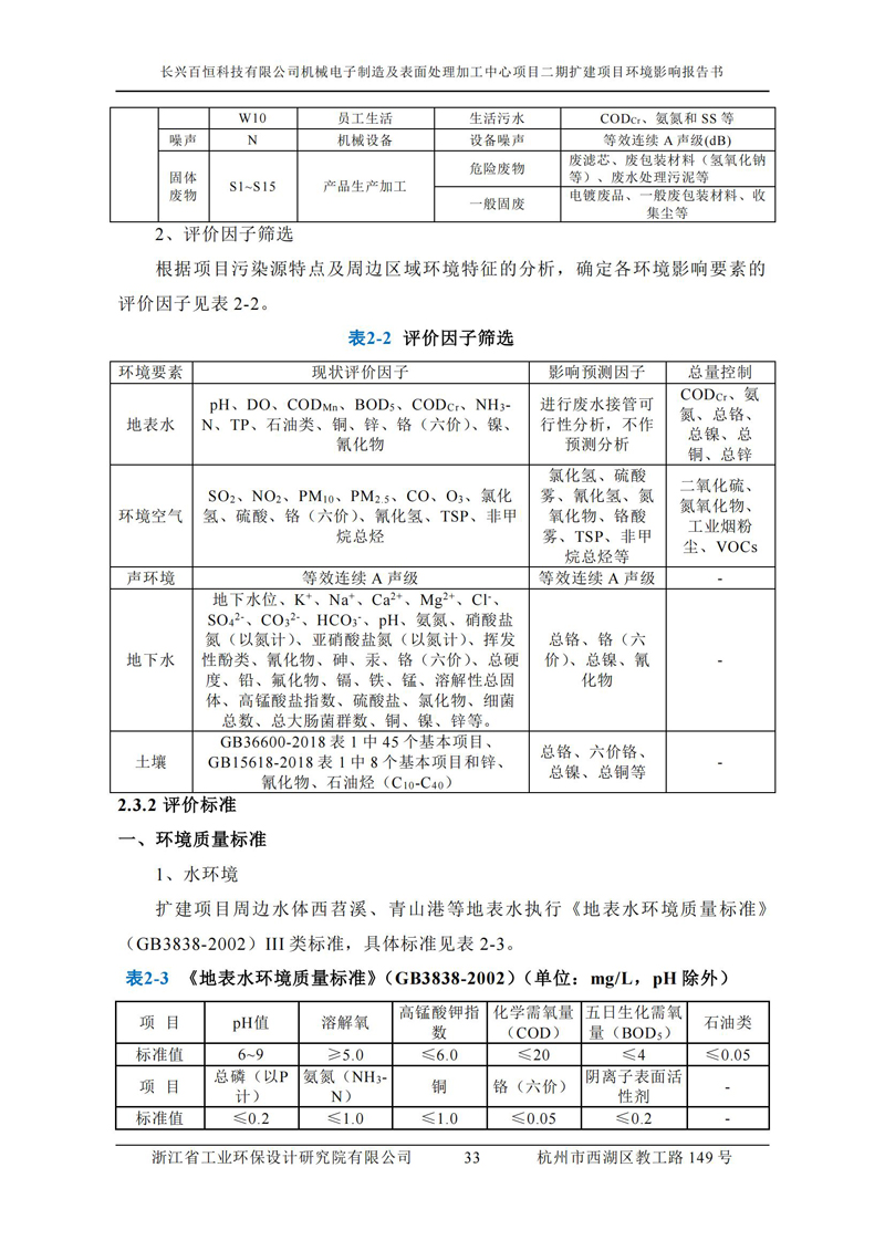 更多完整版詳情請下載文件預覽 “ 長興百恒科技有限公司機械電子制造及表面處理加工中心項目二期擴建項目 環境影響報告書 ” |
