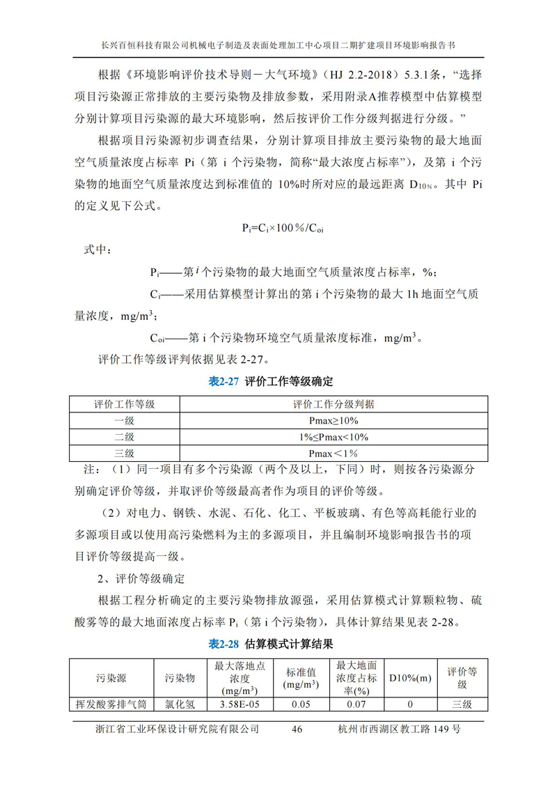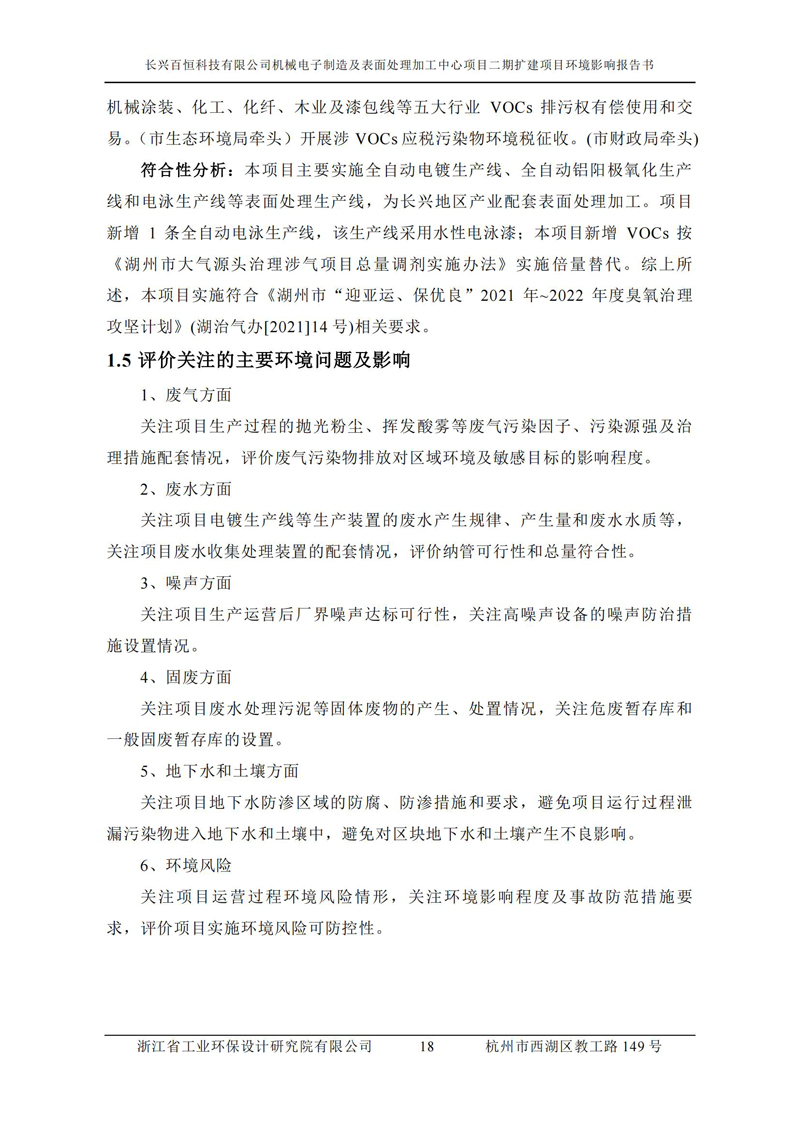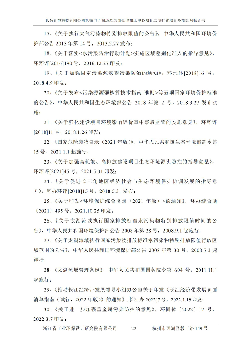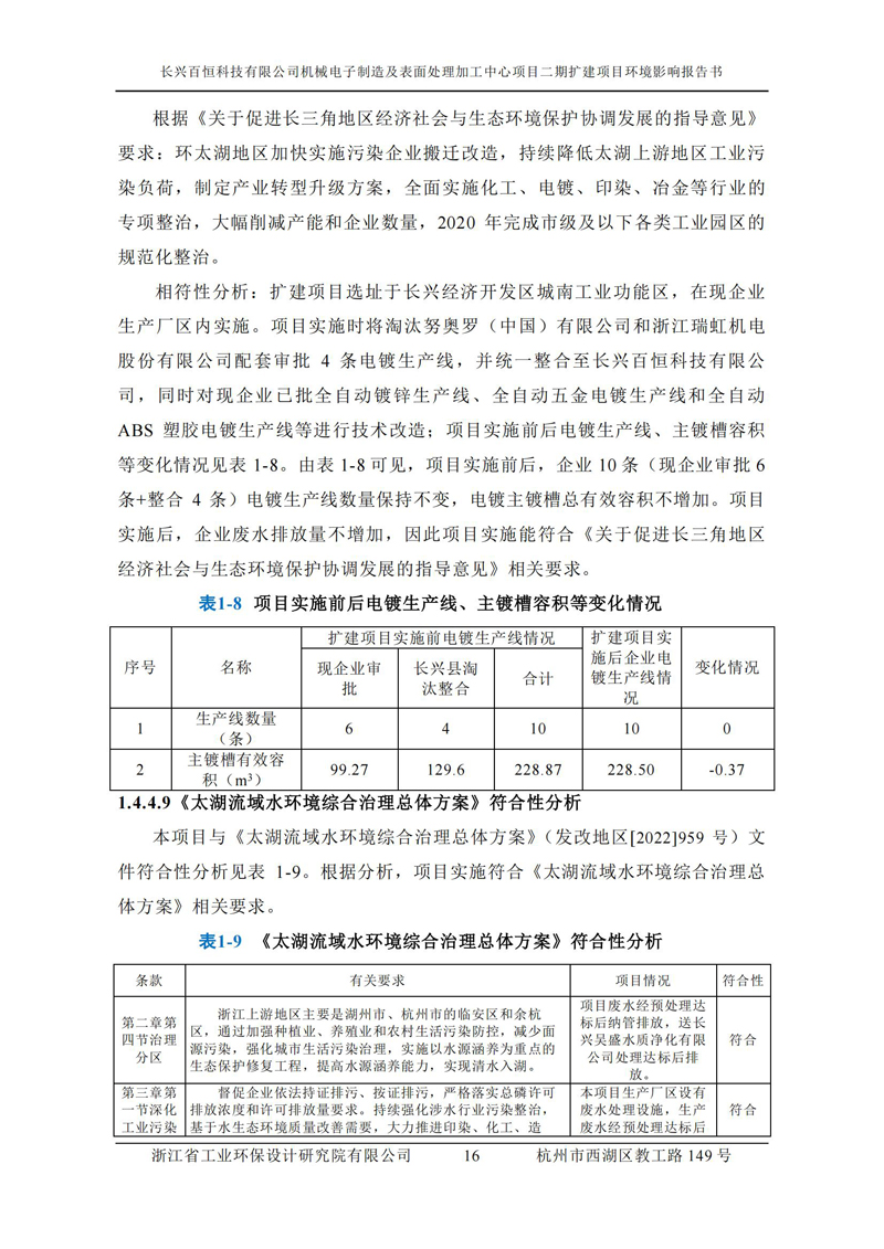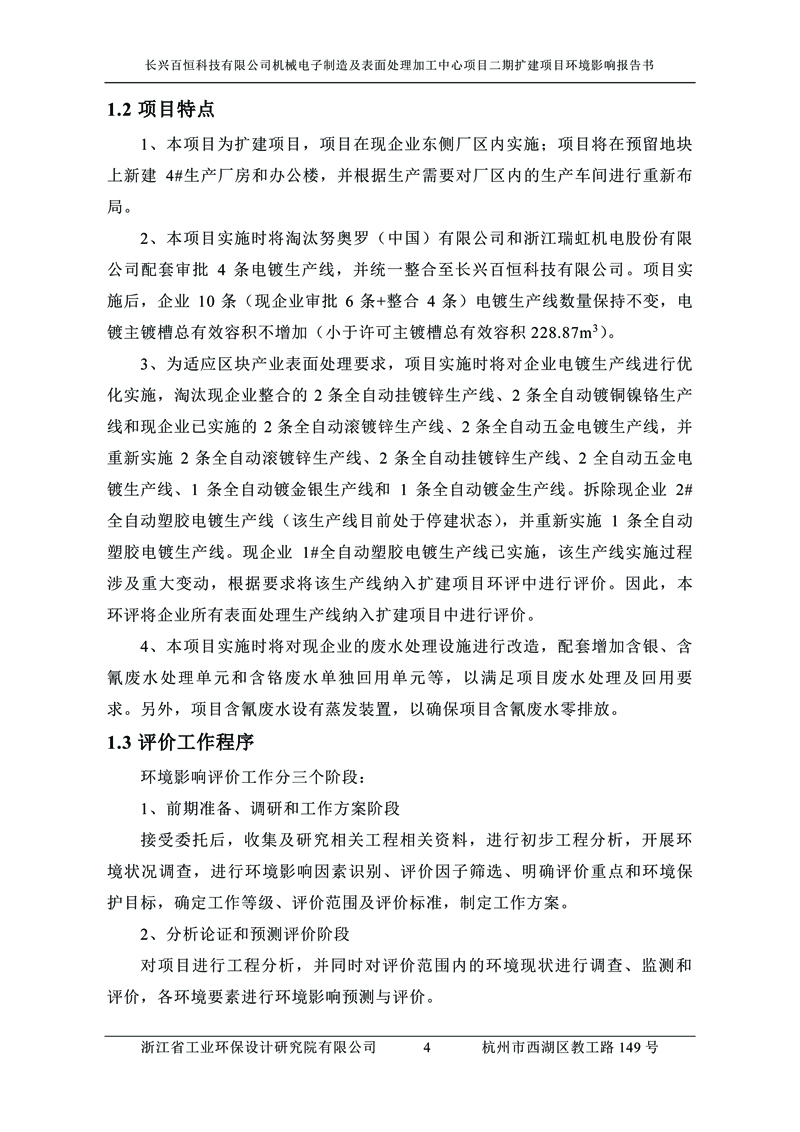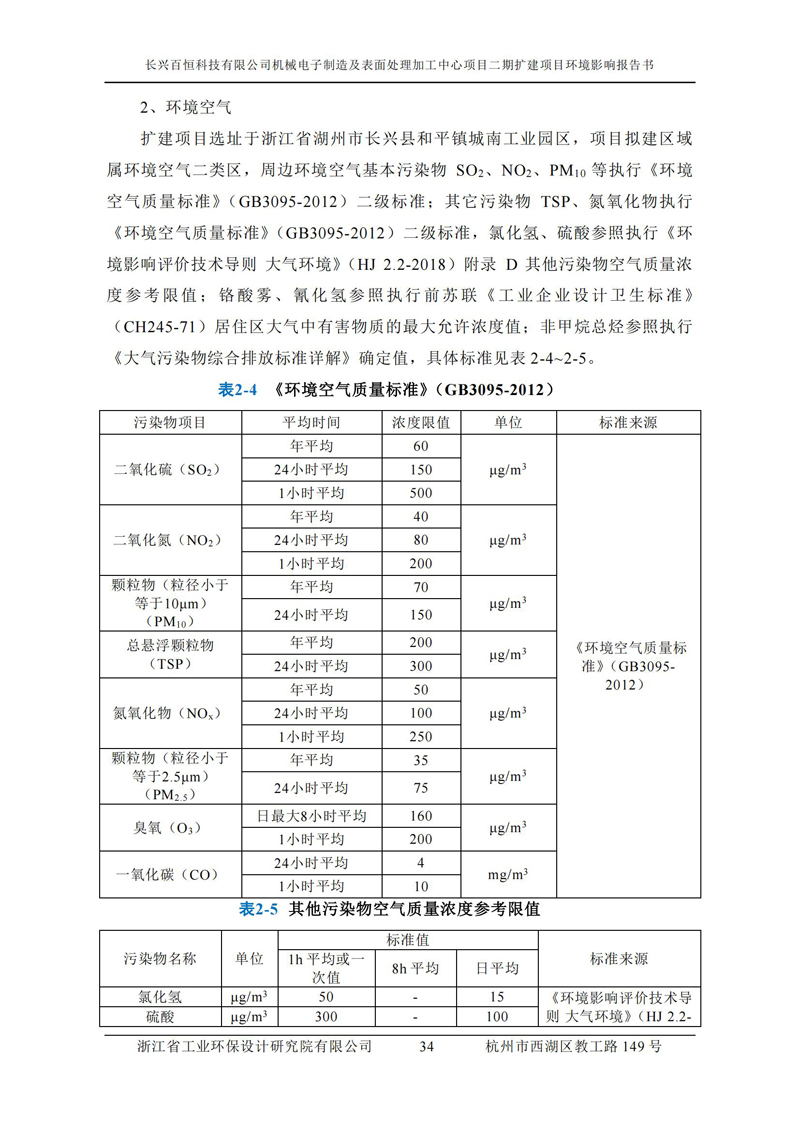 更多完整版詳情請下載文件預覽 “ 長興百恒科技有限公司機械電子制造及表面處理加工中心項目二期擴建項目 環境影響報告書 ” |